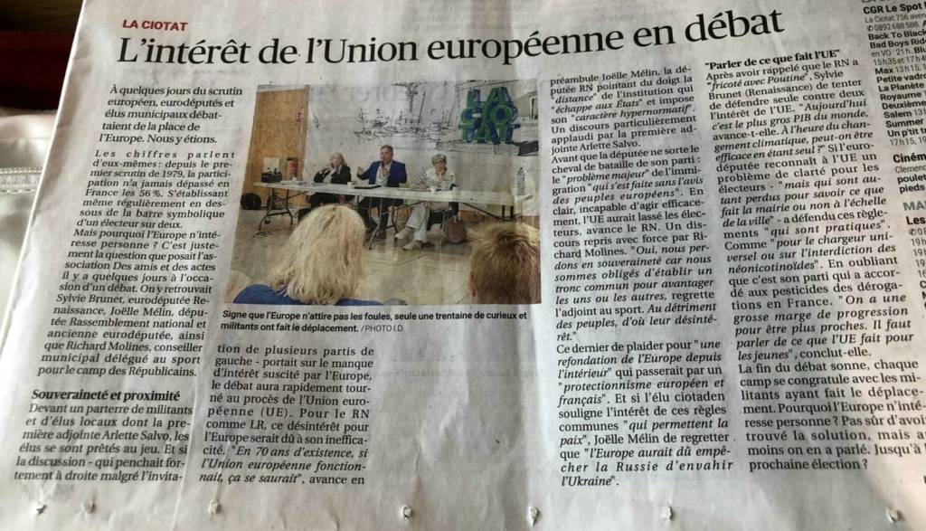 « Pourquoi l’Europe n’intĂ©resse personne » — EurodĂ©putĂ©s et Ă©lus municipaux ont dĂ©battu Ă La Ciotat.