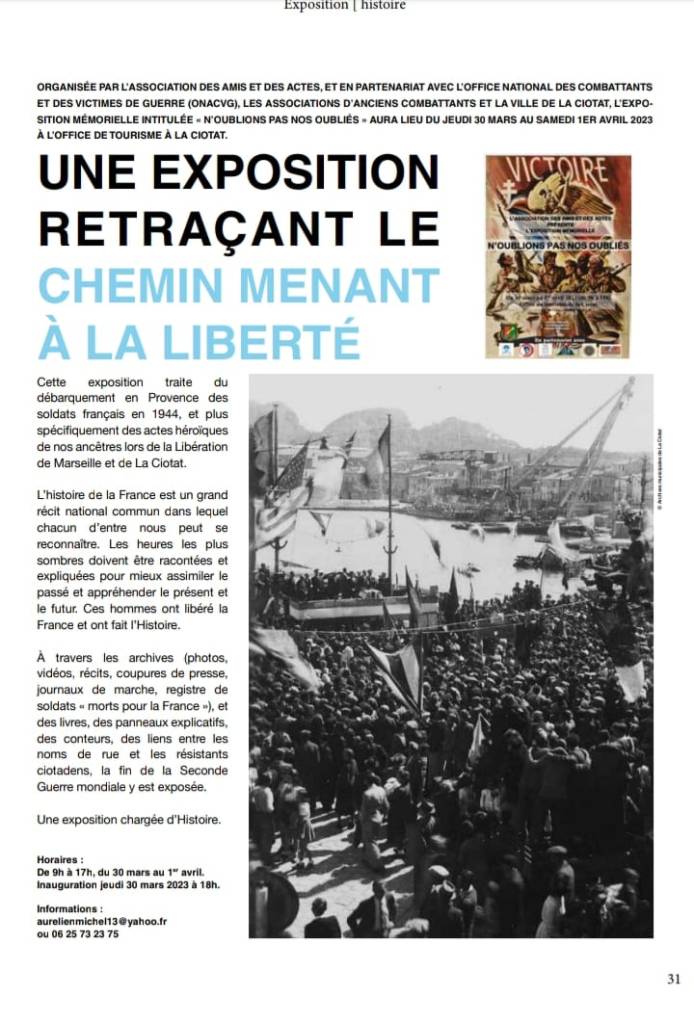 Le magazine de La Ciotat a prĂ©sentĂ© l’exposition mĂ©morielle « N’oublions pas nos oubliĂ©s », organisĂ©e par l’association en partenariat avec l’ONACVG et la Ville de La Ciotat, retraçant le dĂ©barquement en Provence de 1944 et la libĂ©ration de Marseille et de La Ciotat.